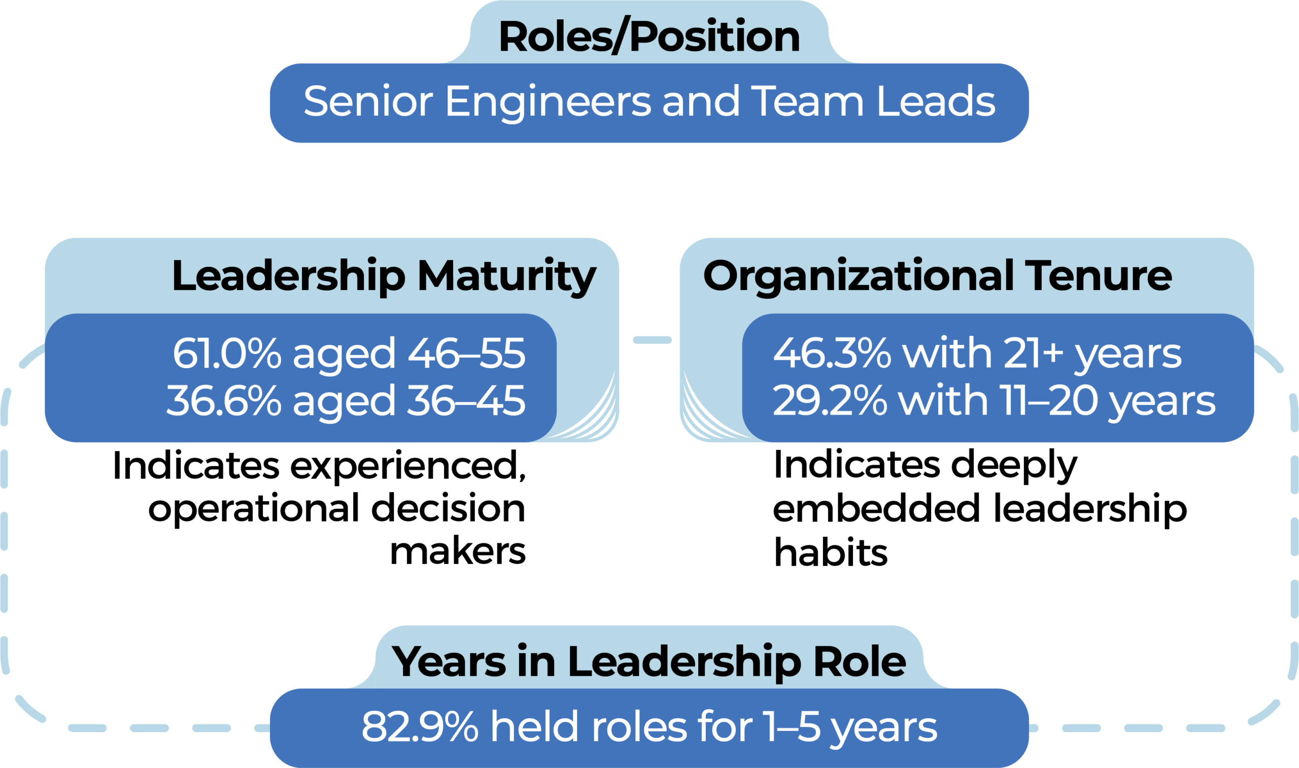 - 9% held roles for 1–5 years