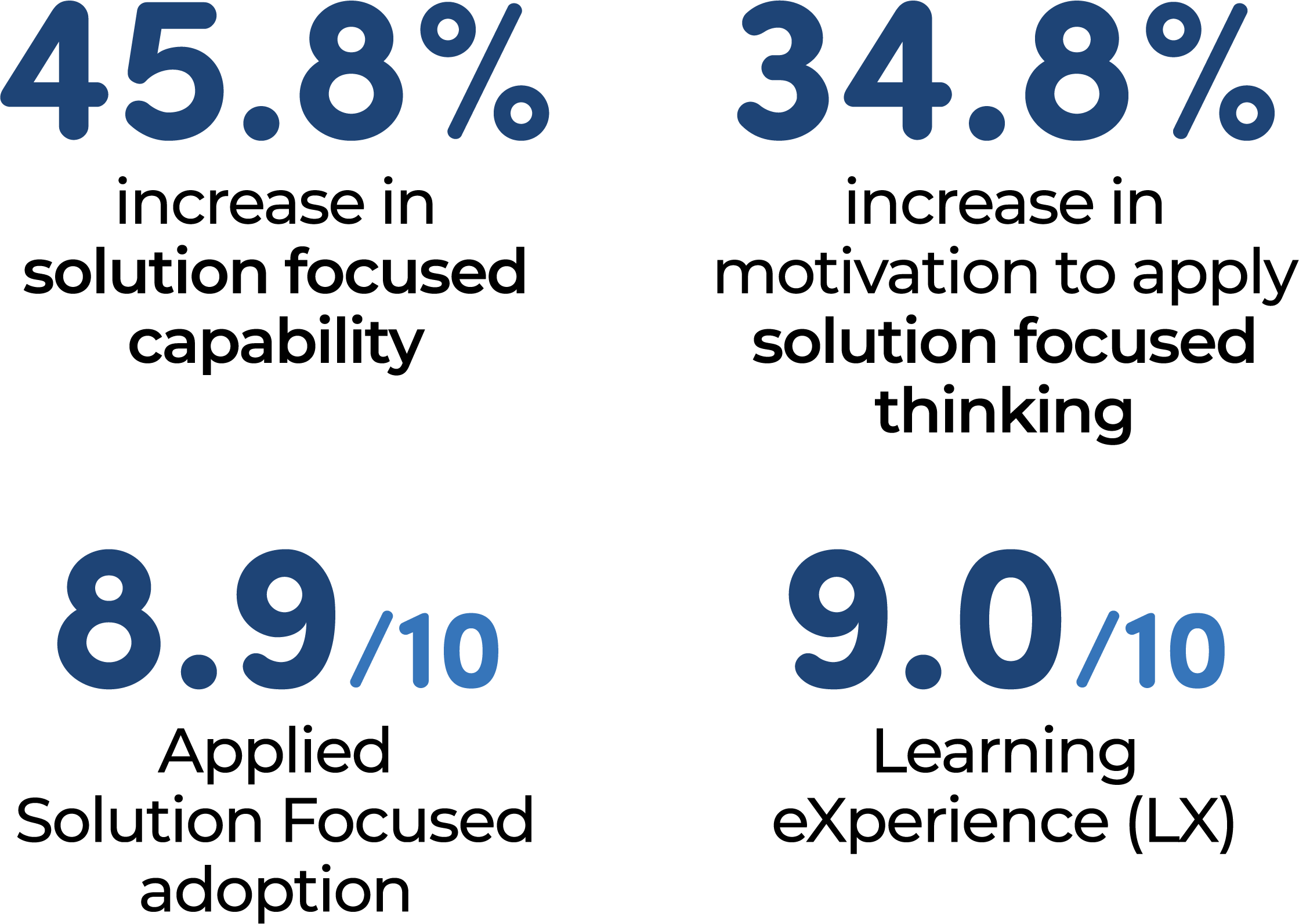 - 34.8% improvement in motivation to apply solution focused skills